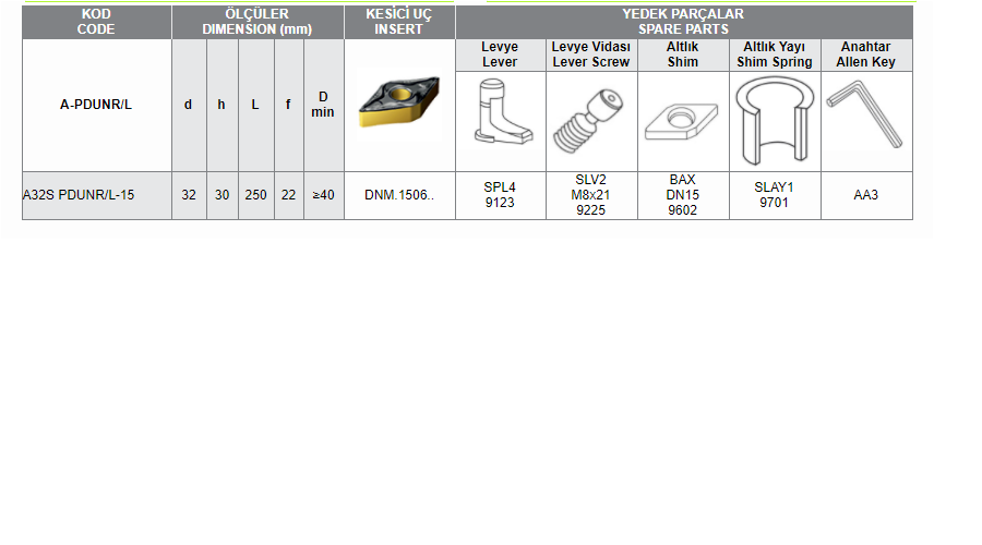 A-PDUNR/L DNM Uç Bağlayan Delik İçi Torna Kateri