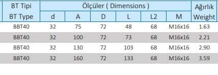 BBT40 32 mm Hafifletilmiş Veldon Tutucu