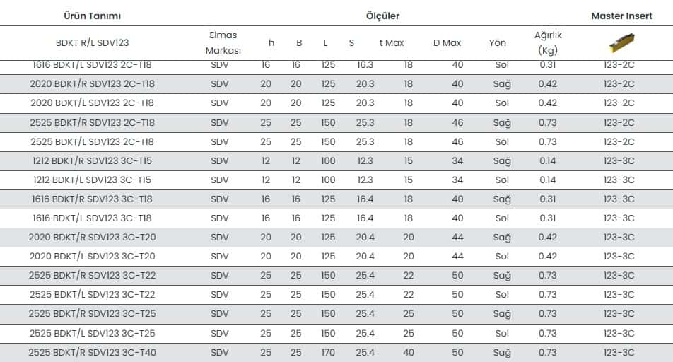 BDKT R/L SDV123 - Dış Çap Kanal Takımları
