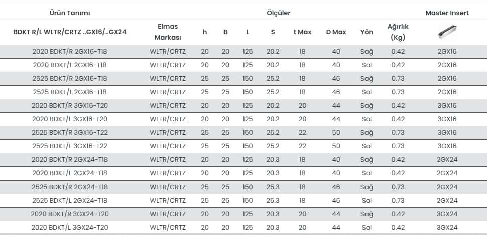 BDKT R/L WLTR/CRTZ ..GX16/..GX24 - Dış Çap Kanal Takımları