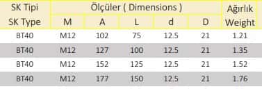 BT40 12 Metrik Vidalı Takım Tutucu İnce Cidarlı