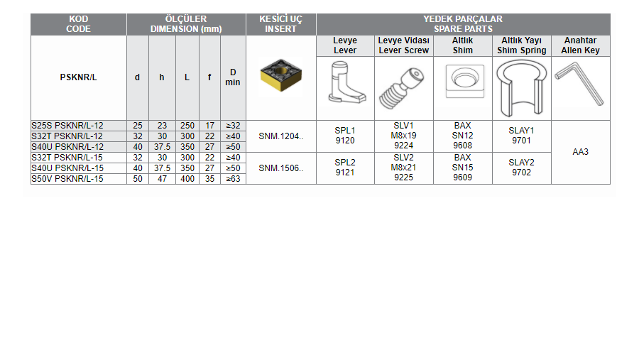 PSKNR/L SNM UUç Bağlayan Delik İçi Torna Kateri