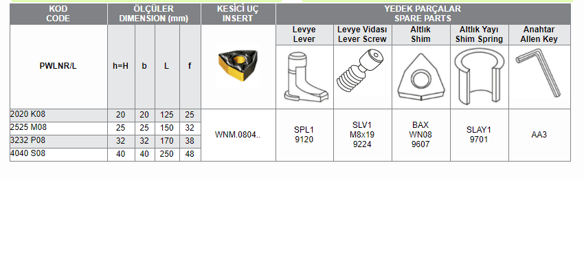 PWLNR/L WNM UÇ BAĞLAYAN DIŞ TORNA KATERİ