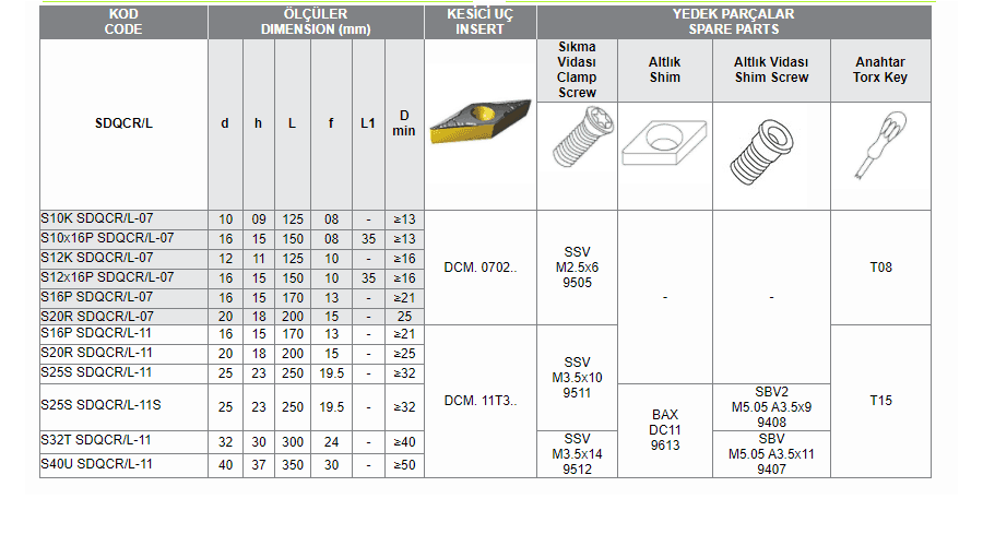 SDQCR/L DCM Uç Bağlayan Delik İçi Torna Kateri