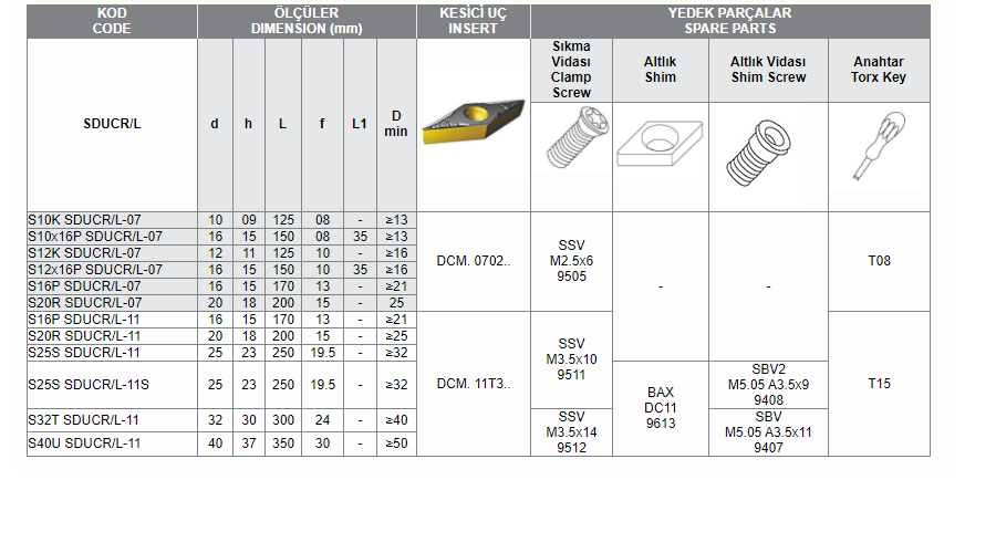 SDUCR/L DCM Uç Bağlayan Delik İçi Torna Kateri