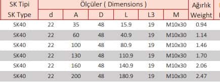 SK40 22 mm Alın Kamalı Malafa