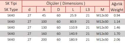 SK40 27 mm Alın Kamalı Malafa