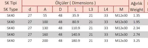 HKT Kesici Takımlar tarafından sunulan SK40 27 mm kombine malafalar, CNC frezeleme ve delme işlemlerinde maksimum hassasiyet sağlar. Sağlam gövde yapısı, uzun ömürlü kullanım ve yüksek performansıyla üretim verimliliğinizi artırır. Endüstriyel standartlara uygun SK40 27 mm kombine malafa modelleri, takım tezgâhlarında güvenilir çözüm sunar.