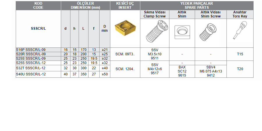 SSSCR/L SCM Uç Bağlayan Delik İçi Torna Kateri
