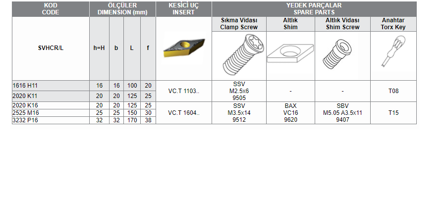 SVHCR/L VC.T UÇ BAĞLAYAN DIŞ TORNA KATERİ