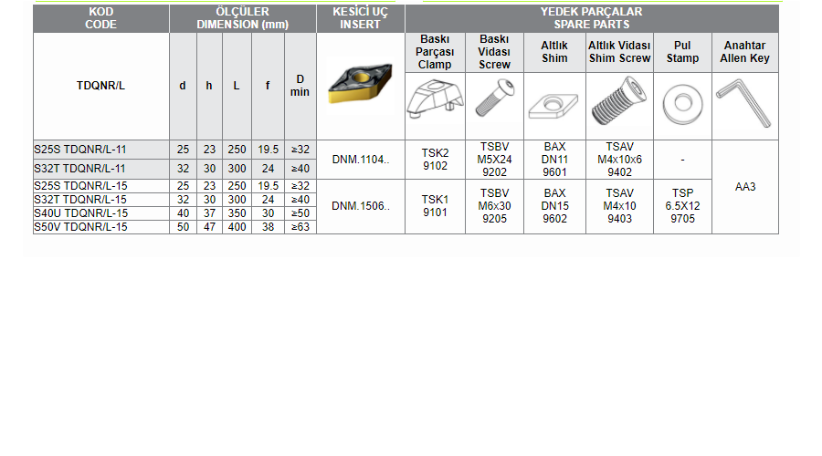 TDQNR/L DNM Uç Bağlayan Delik İçi Torna Kateri