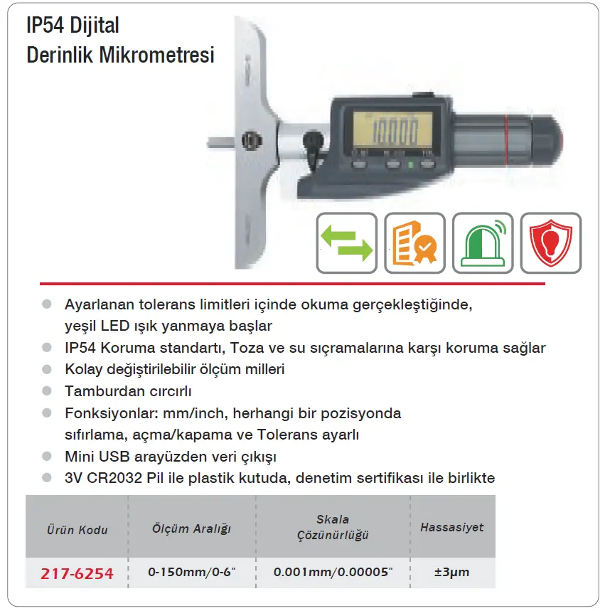 Werka IP54 Dijital Derinlik Mikrometresi 217-6254
